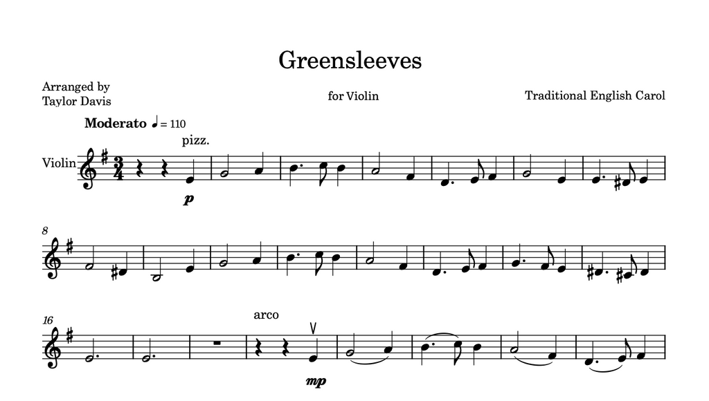 Greensleeves - VIOLIN Sheet Music with Play-Along Backtrack