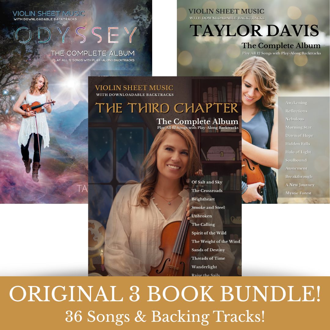 Get all 3 of my original album sheet music books together at a discounted bundle price! This collection includes 36 of my original violin compositions, complete with cinematic play-along backing tracks so you can perform them exactly the way I do.